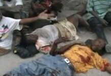 A Port-au-Prince règne une odeur insoutenable, certaines rues sont jonchées de cadavre, bien souvent en putréfaction. Les corps sont souvent transporté à mains...