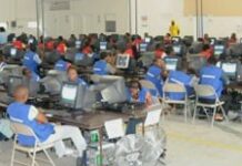 Les techniciens mettent les bouchées doubles au centre de tabulation des votes